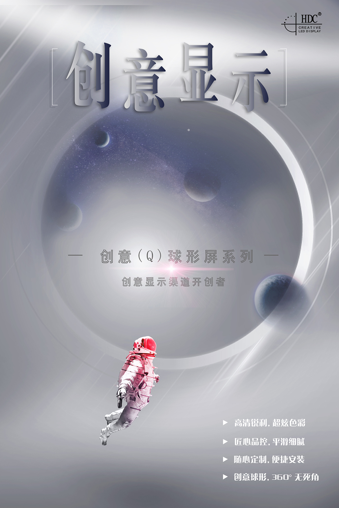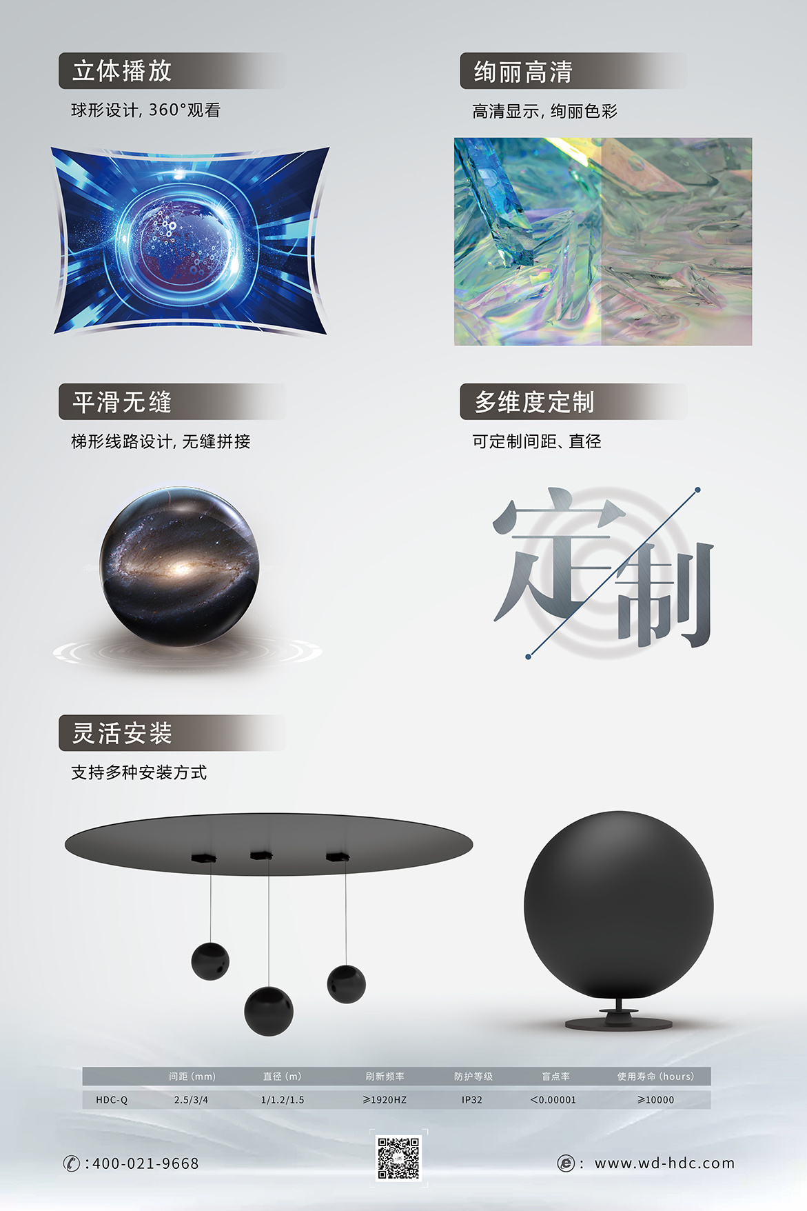 高清锐利,超炫色彩, 匠心品控,平滑细腻, 随心定制,便捷安装, 创意球形,360℃无死角。